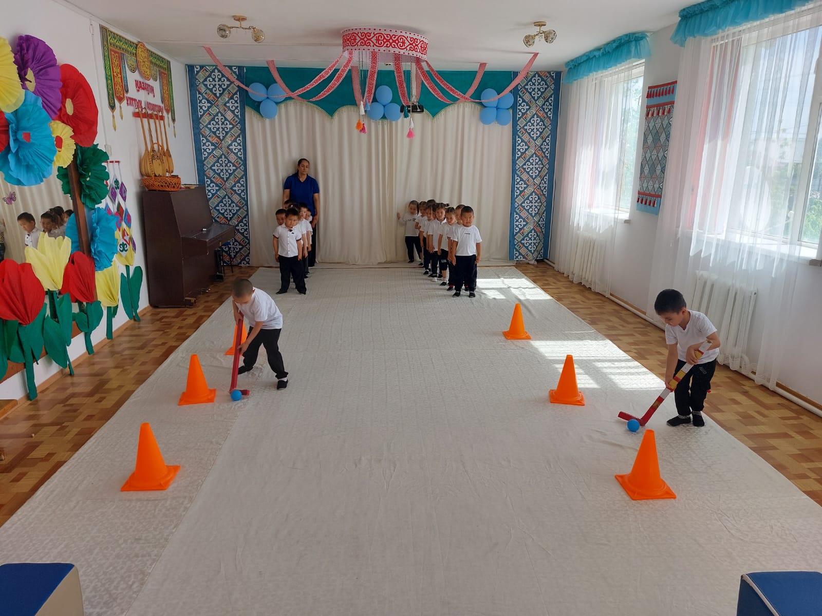 Мақсаты: Ұлттық ойындарды дене шынықтыру іс - әрекеттерінде кең қолдана отырып, балалардың дене тәрбиесін дұрыс жолға қою, спорттық шеберліктерін, мүмкіндіктерін арттыру.
